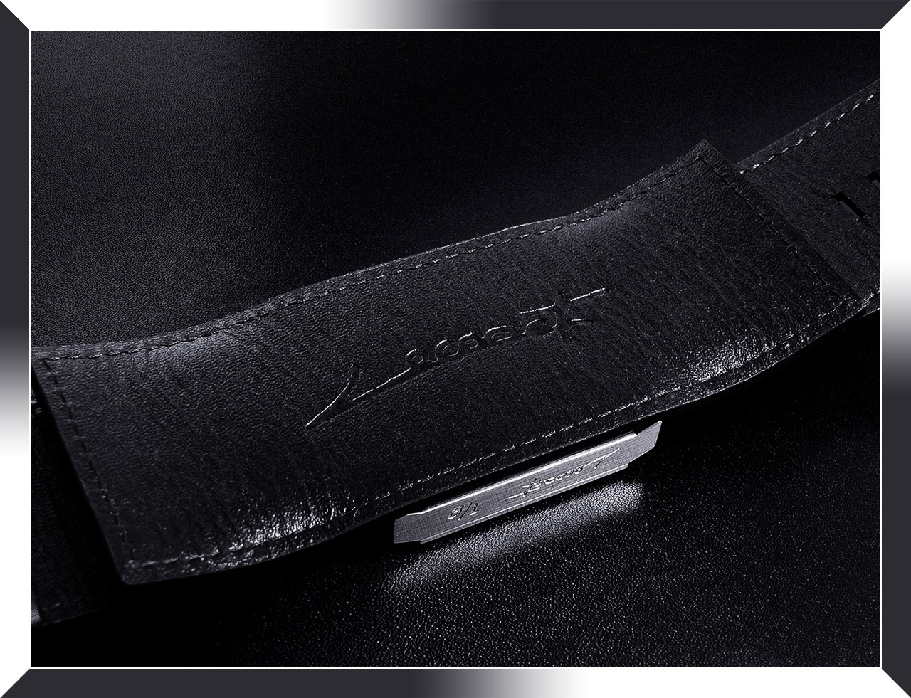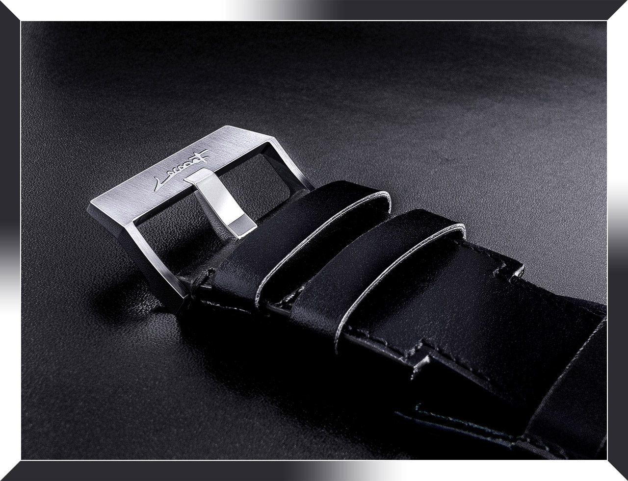 Pin buckle : 316 L grade stainless steel, precision machining, engraving, polishing and hand satin-finishing.