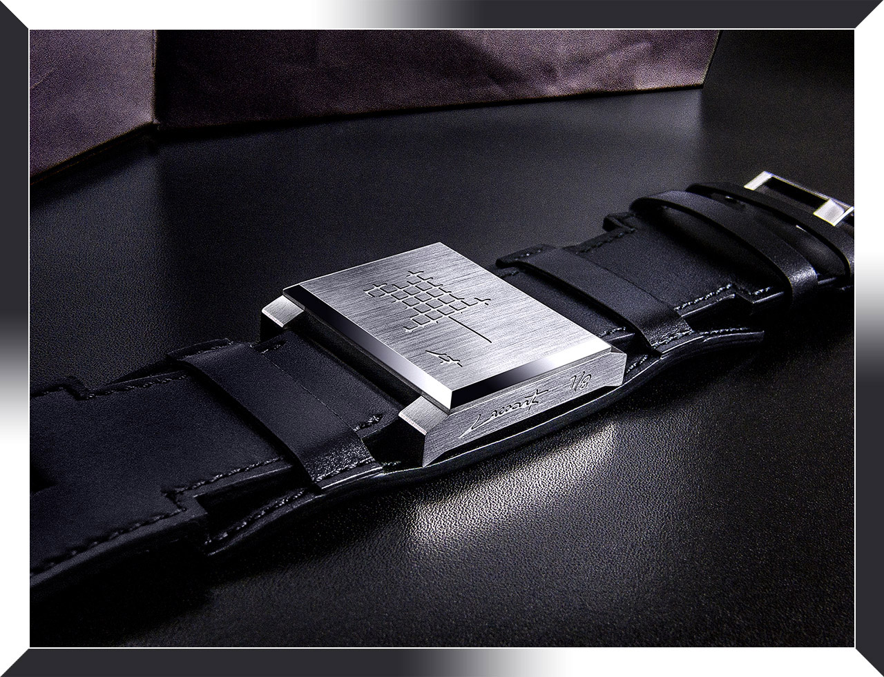 Boucle ardillon : Acier 316 L, usinage de précision, gravure, polissage et satinage main.